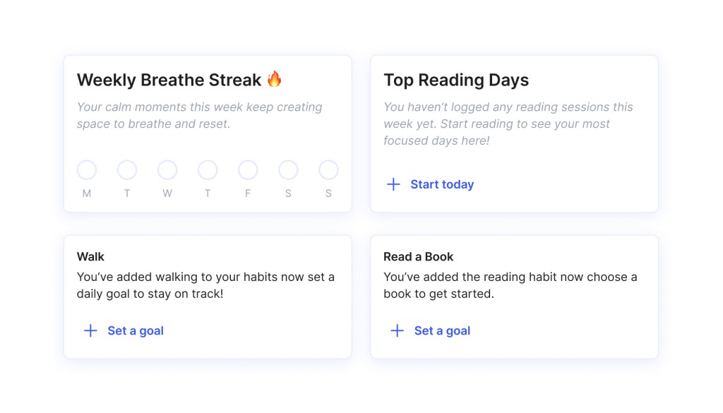 We designed dashboards that feel rewarding and inspiring, not overwhelming. Each screen encourages users to reflect on their progress while keeping interactions smooth and enjoyable.