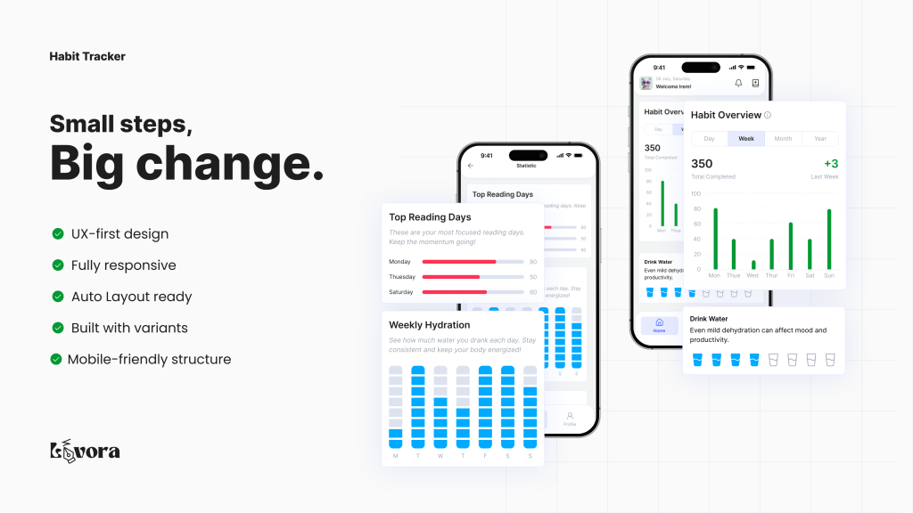 In this article, I’ll walk you through how we designed a Habit Tracker UI Kit in Figma, focusing on both behavioral psychology principles and modern UX design practices.
